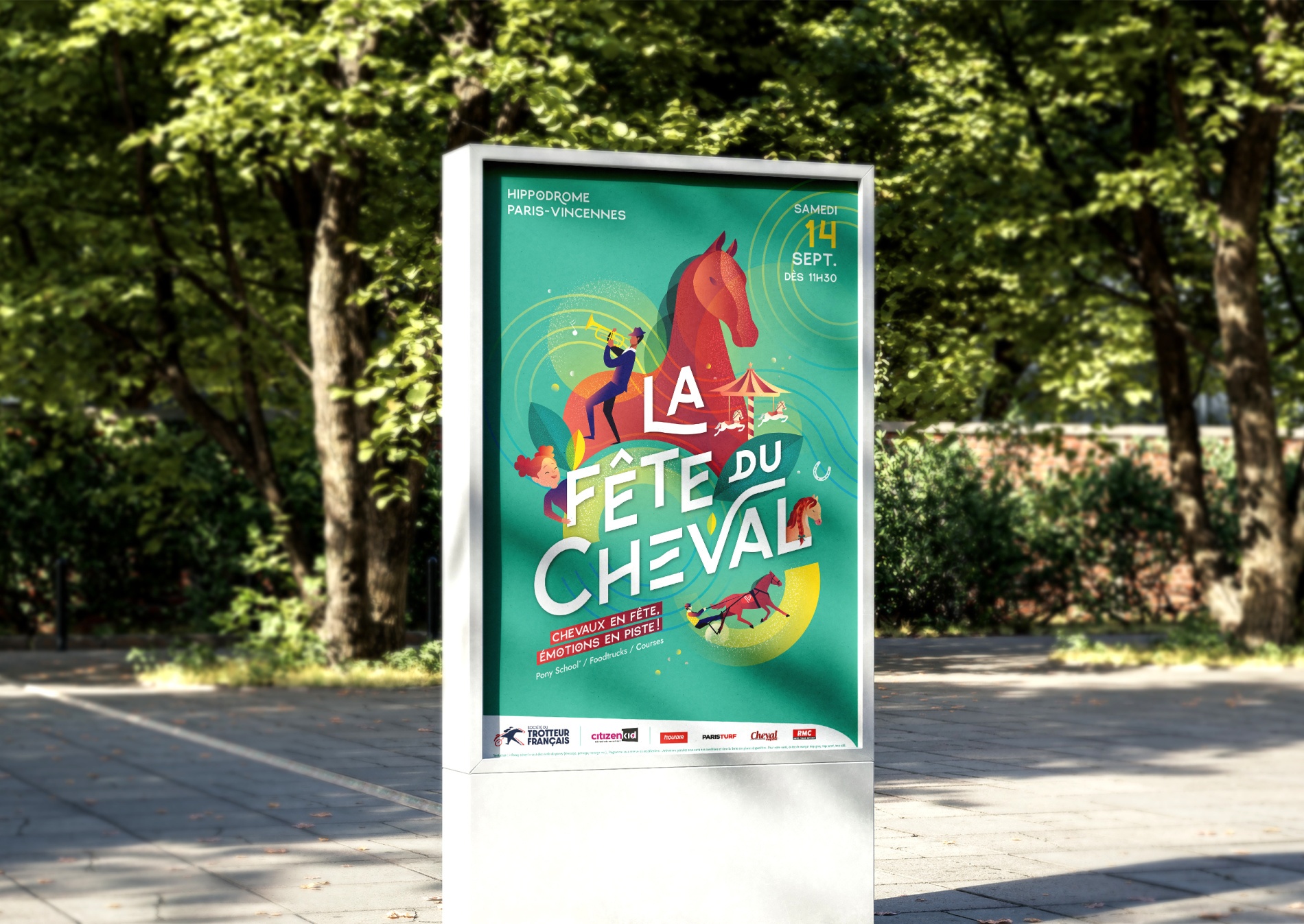 Création d'un visuel illustré pour le Fête du Cheval à Paris Vincenne, organisé par la Société du Trot.